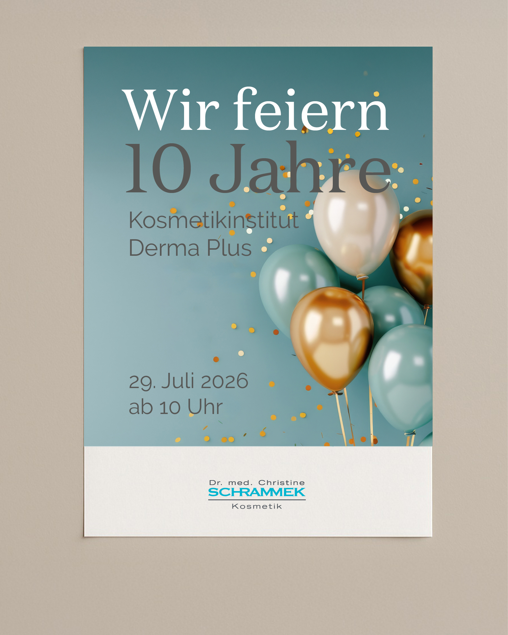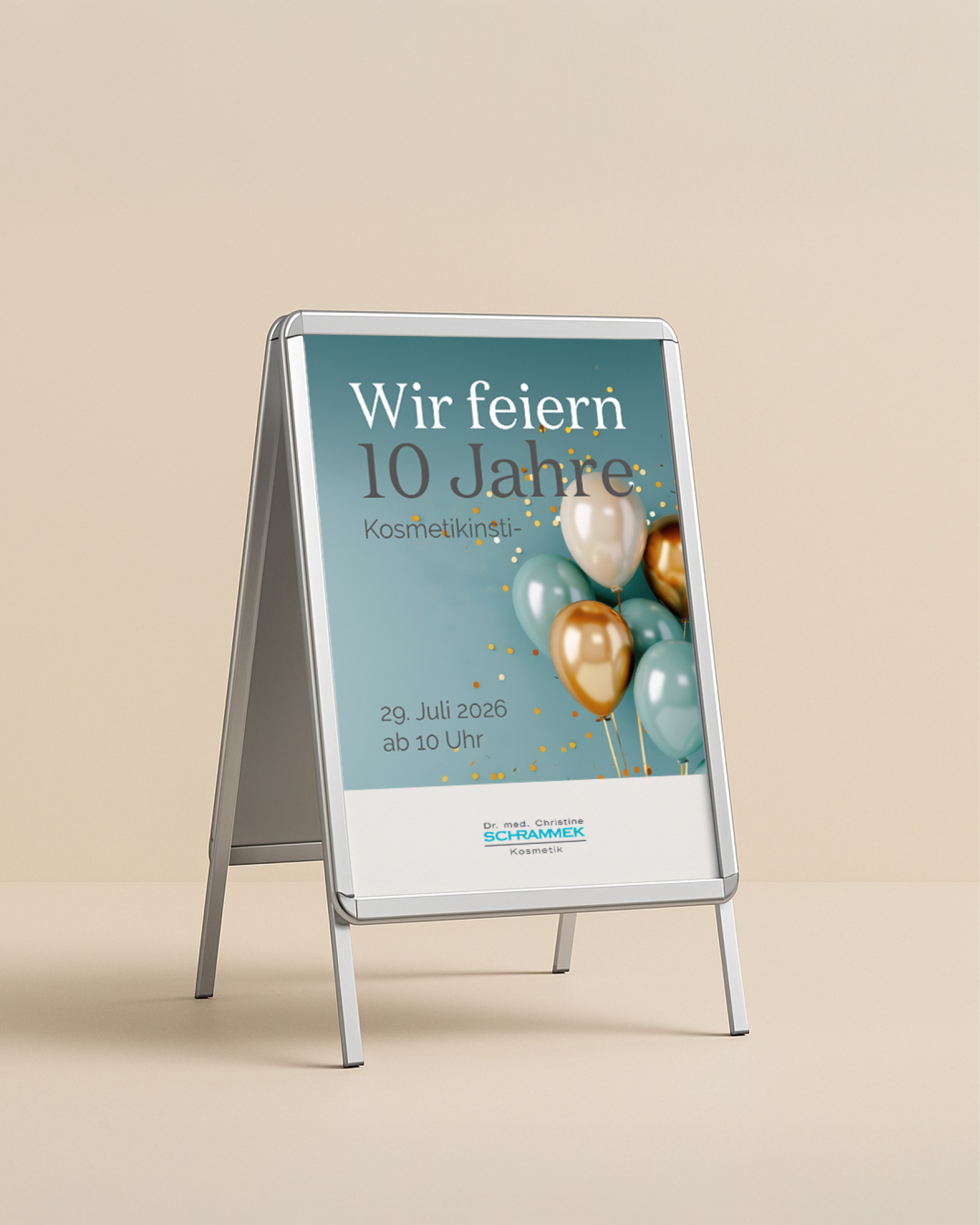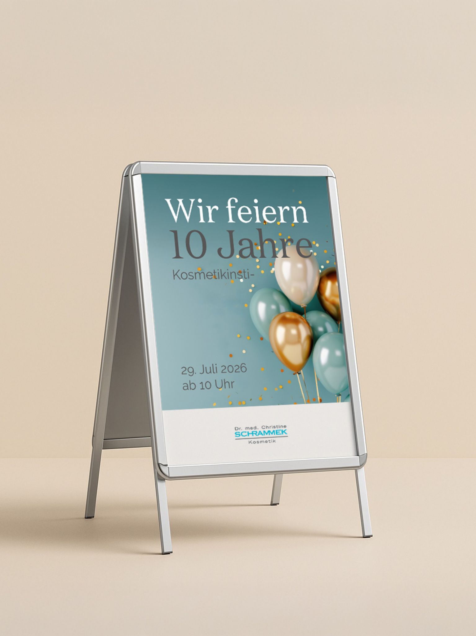 Feiere Dein Jubiläum sichtbar und stilvoll: Mit einem hochwertigen Plakat im DIN-A1-Format machst Du Deine Kundinnen und Kunden direkt im Studio oder im Schaufenster auf Deinen besonderen Anlass aufmerksam. Das aufmerksamkeitsstarke Design vermittelt Wertigkeit und sorgt dafür, dass Dein Jubiläum im Mittelpunkt steht. So schaffst Du Emotionen und bleibst bei Deinen Kundinnen und Kunden präsent.